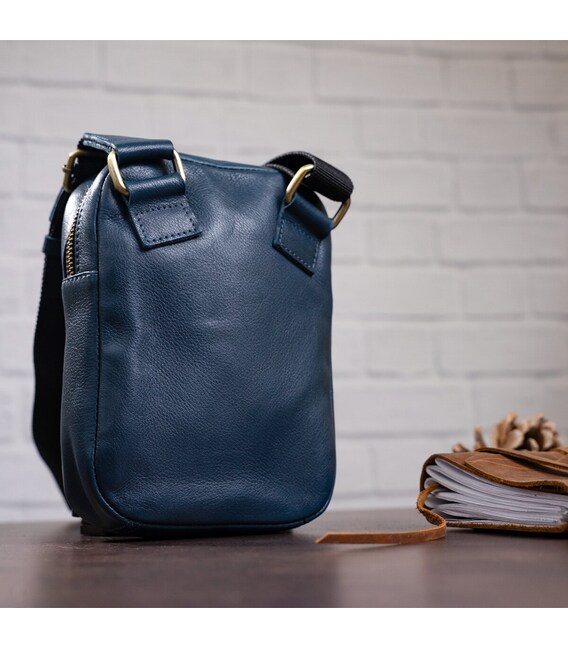 Описание Мужская кожаная сумка через плечо для документов и города SHVIGEL 19105 Синяя