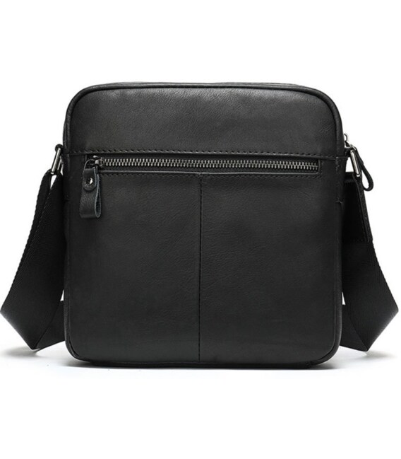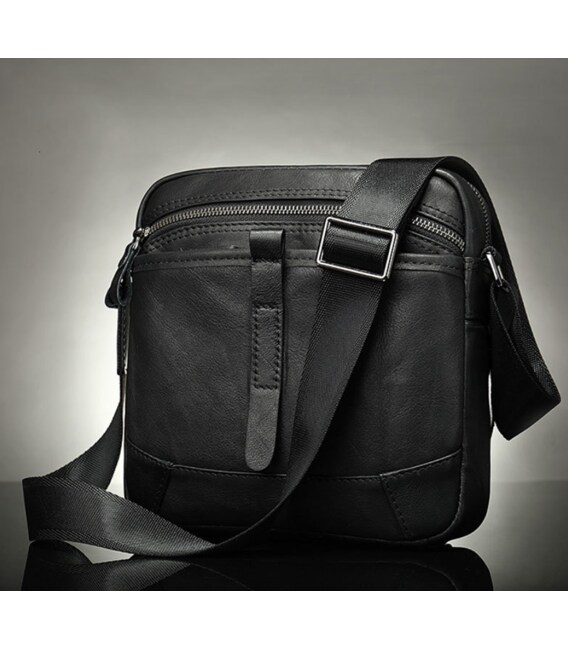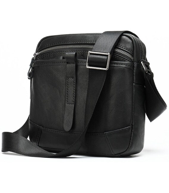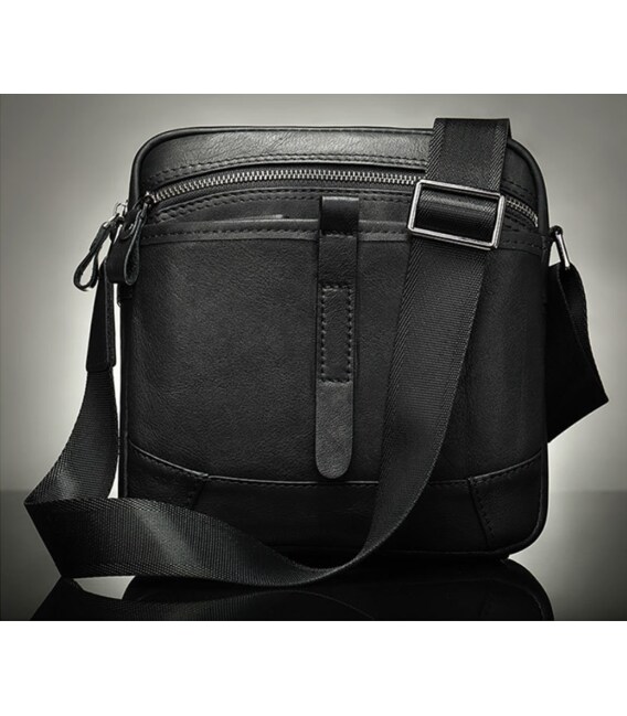 Компактная мужская сумка из натуральной кожи классического черного цвета и горизонтального формата. Внутри - коричневая текстильная подкладка. Дополнено изделие фурнитурой серебристого цвета из крепкого металла. Сумка станет идеальным помощником мужчине на каждый день. Изделие создано для мужчин, которые ценят качество и компактный размер. С ней будет также очень удобно ходить на работу. Изделие станет чудесным подарком для любого мужчины. В комплекте к сумке идет пылезащитный чехол. На лицевой стороне сумка дополнена кожаным хлястиком.