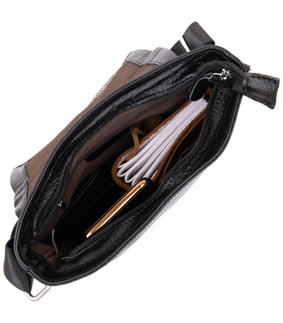 Классическая мужская сумка вертикального типа с серебристой фурнитурой. Изделие выполнено из кожи флотар. Дополнена сумка качественным текстильным ремешком на плечо. На тыльной стороне карман на молнии. Внутри качественная коричневая подкладка из плотного текстиля. Производство - фабричный Китай высокого качества. В комплекте к сумке - пылезащитный чехол. Сумка - идеальный вариант как для себя так и на подарок.
