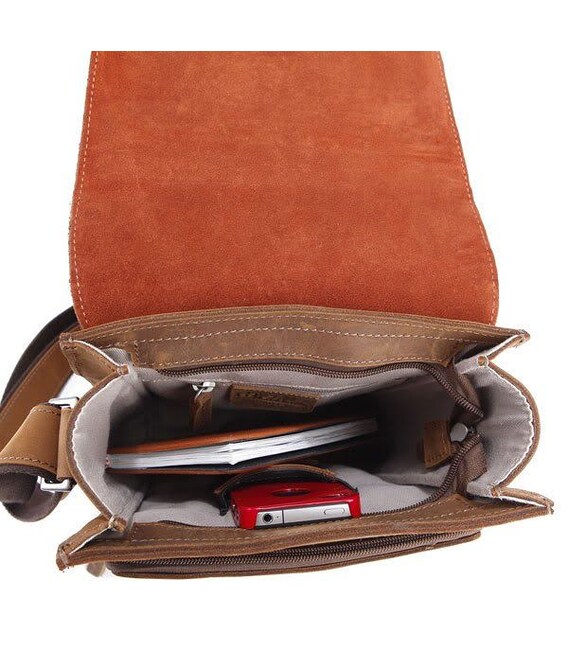 Кожаная мужская сумка через плечо для документов и города Vintage 14159 Коричневая