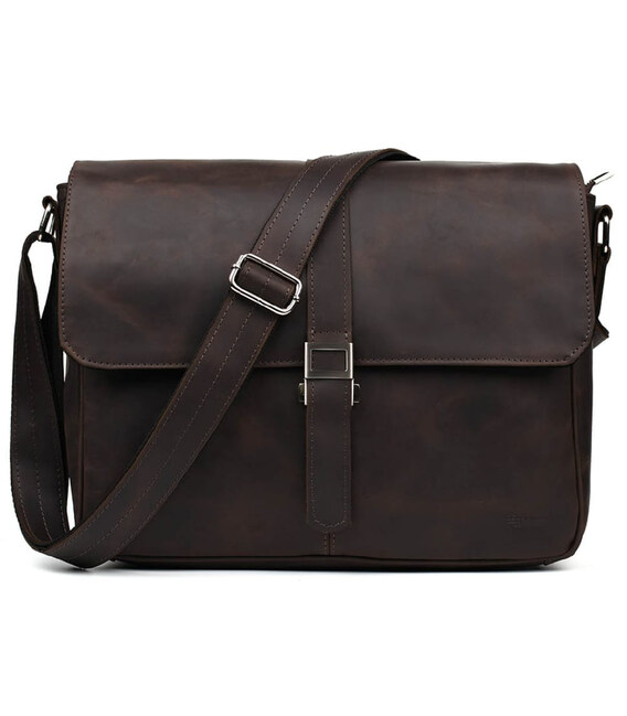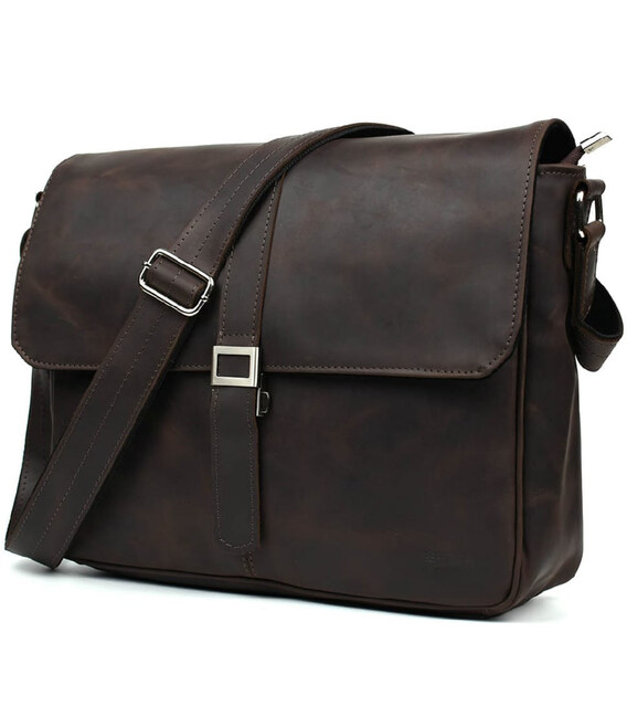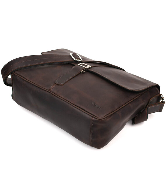 Чоловіча сумка через плече із коричневої крейзі хорс TARWA RC-1046-4lx. Для перенесення ноутбука до 14” або документів формату А4.