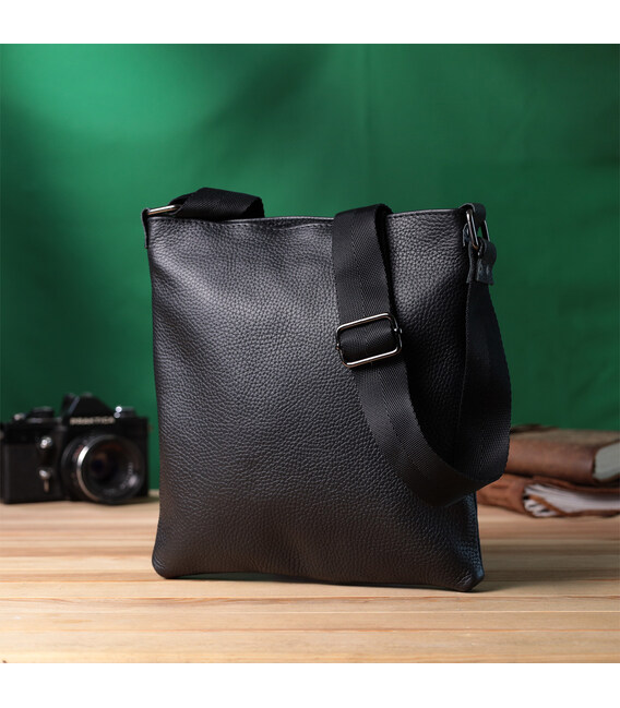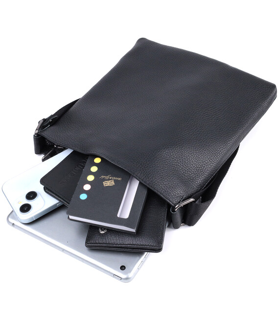 Описание Тонкая сумка для мужчин через плечо из натуральной кожи Shvigel 22850 Черная