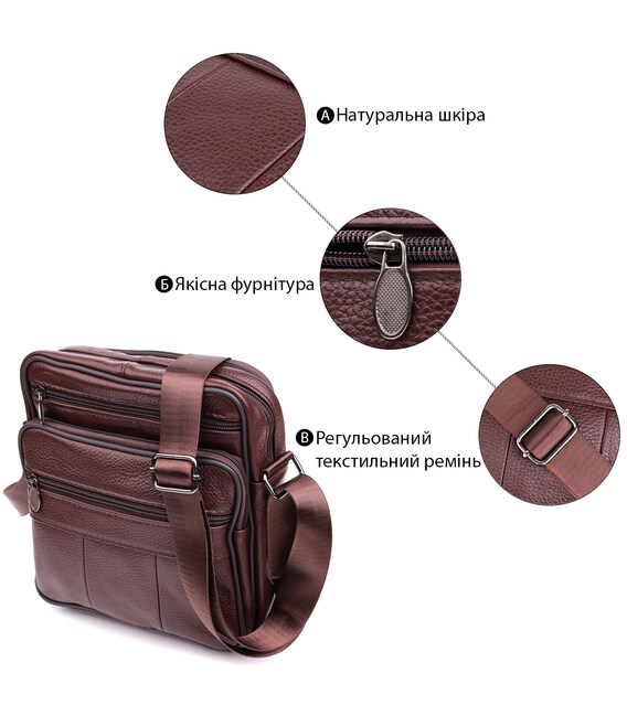 Описание Удобная мужская сумка из натуральной кожи 22858 Vintage Коричневый