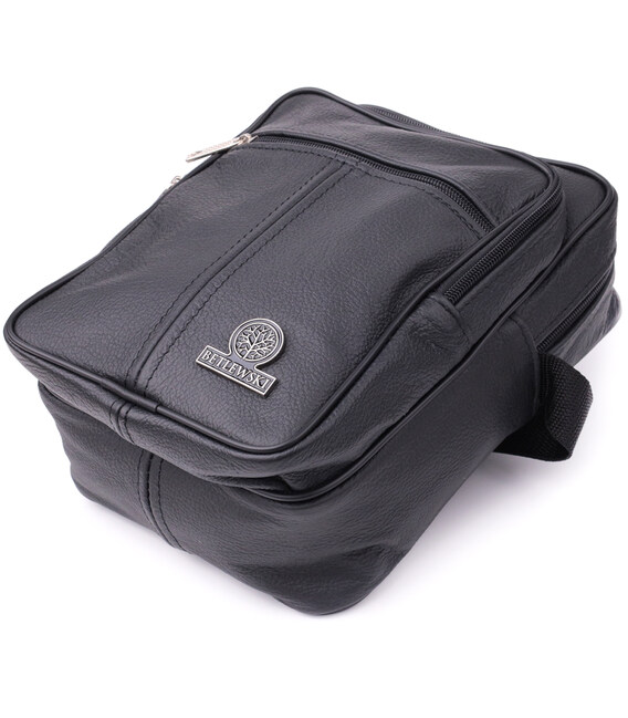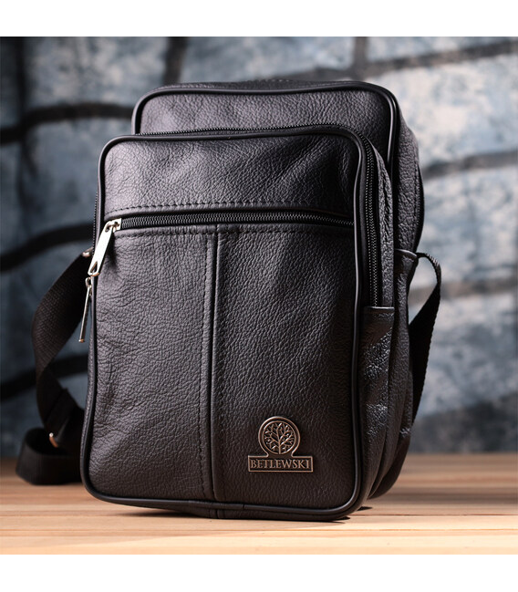 Удобная мужская сумка из натуральной кожи. Аксессуар совсем не прихотлив в уходе и пользуется особой популярностью у мужчин. Внутри сумки плотная текстильная подкладка. По краям аксессуар прошит ровной строчкой. В правом нижнем углу металлический логотип производителя. Сумка станет прекрасным подарком для любого мужчины.