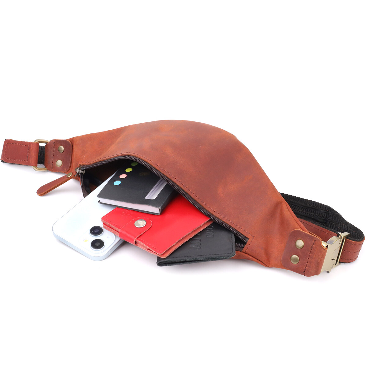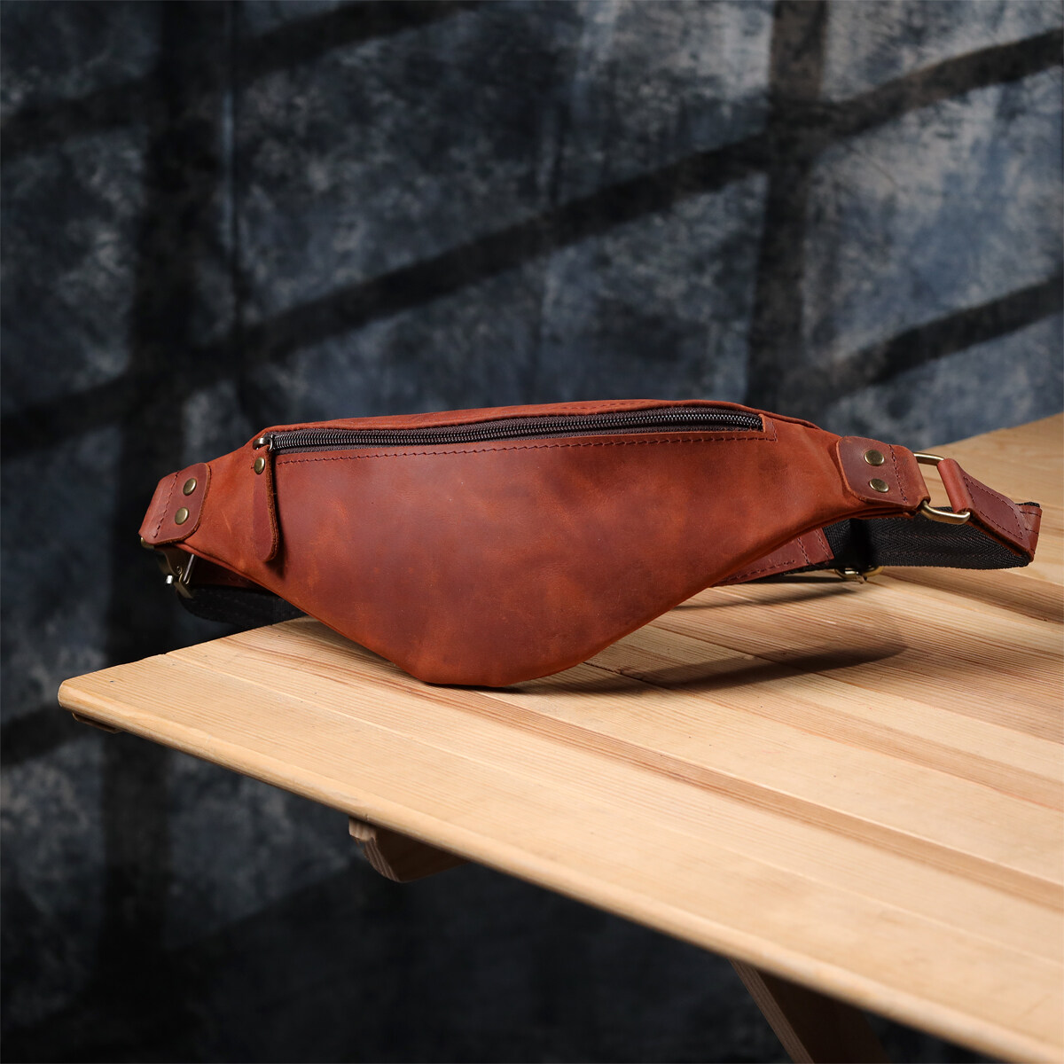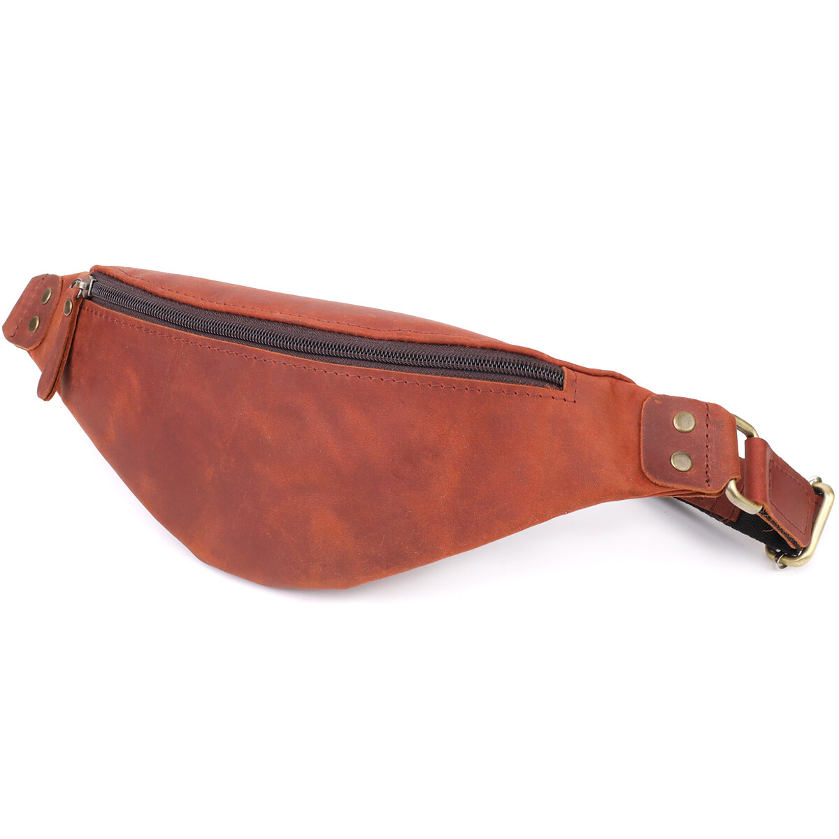 Мужская сумка-бананка из винтажной рыжей кожи — яркий акцент вашего образа. Эта сумка-бананка изготовлена из натуральной кожи с выразительной винтажной фактурой и благородным рыжим оттенком, который делает аксессуар по-настоящему заметным и стильным. Тёплый рыжий цвет придаёт модели индивидуальность, подчёркивая природную красоту материала.