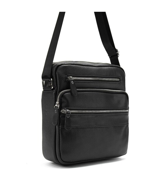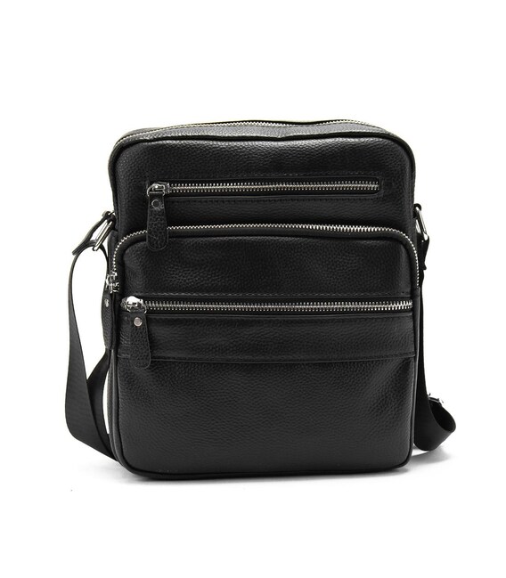 Сумка через плечо Tiding Bag M56-9981A из натуральной кожи в черном цвете, зернистой фактуры. Размер: 21 x 7 x 25 см.Мужская кожаная сумка черного цвета. Поверхность кожи имеет зернистую структуру. Плечевой ремень регулируется по длине.Одно большое основное отделение, есть потайной карман на молнии. С лицевой стороны есть три дополнительных кармана на молнии с тыльной стороны также есть карман на молнии.Подкладка: текстиль. Цвет: черный Цвет фурнитуры: серебро. Нашли эту модель дешевле? Свяжитесь с нами и мы предложим Вам самую низкую цену в Украине, так как являемся производителем данного товара.