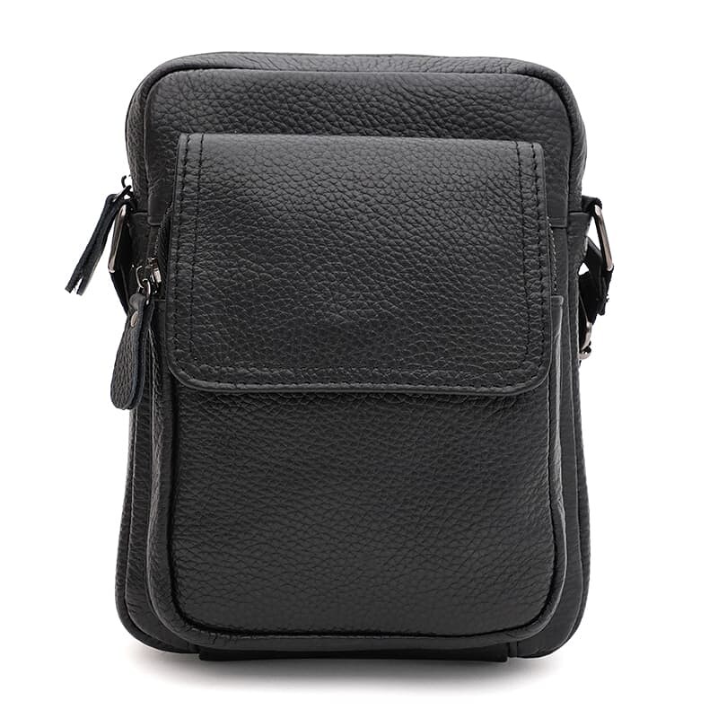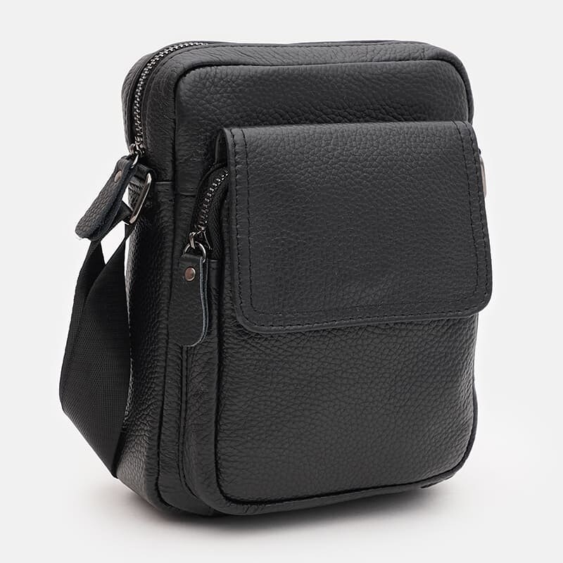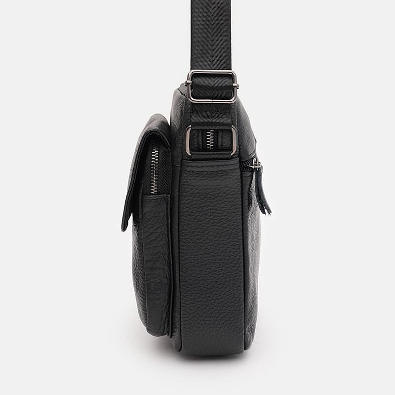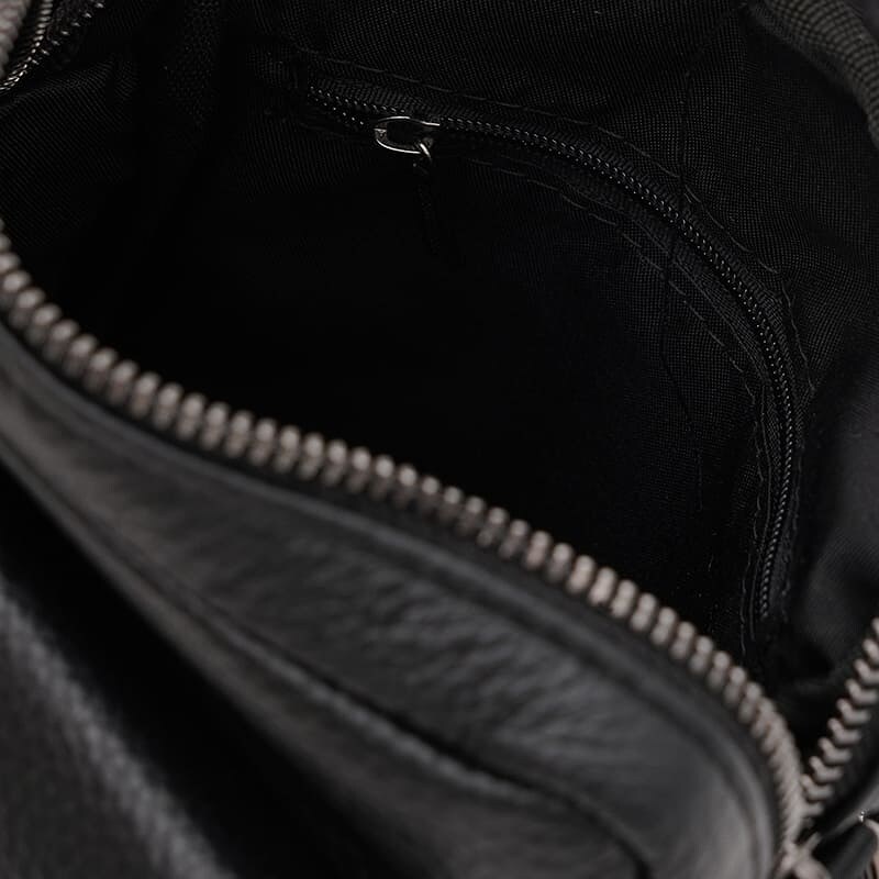 Мужская сумка выполнена из качественной натуральной кожи. Основное отделение закрывается на молнию. С лицевой стороны есть карман на молнии + клапанкнопка; с тыльной – 1карман на молнии. Внутри также расположен карман на молнии для телефона и других мелочей. Подкладка – текстиль. Несъёмный плечевой ремень из текстиля регулируется по длине.