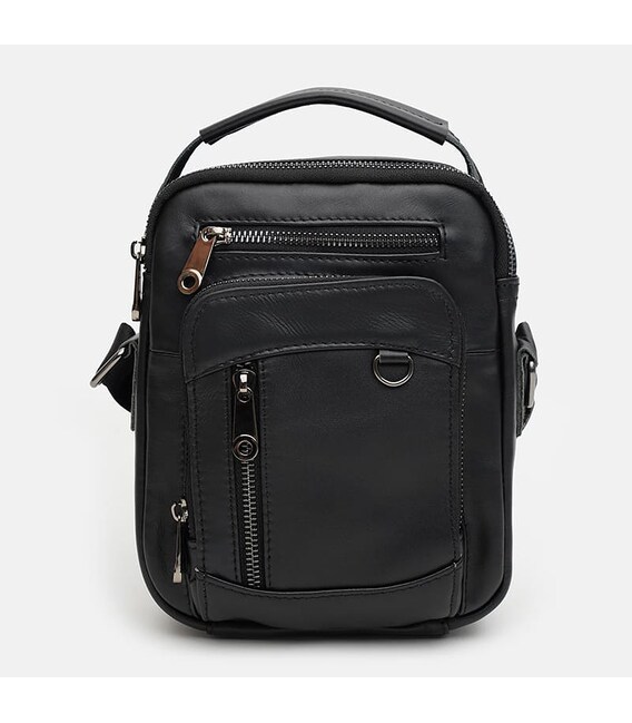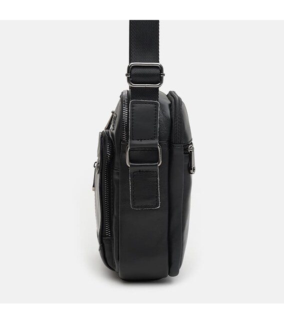 Мужская кожаная сумка имеет 2 отделения, закрывается на молнию. С лицевой стороны 3 кармана, с наружней-1 карман, внутри 2 кармана для телефона и мелочей. Подкладка-текстиль. Несъемный плечевой ремень из текстиля, ручка из натуральной кожи.
