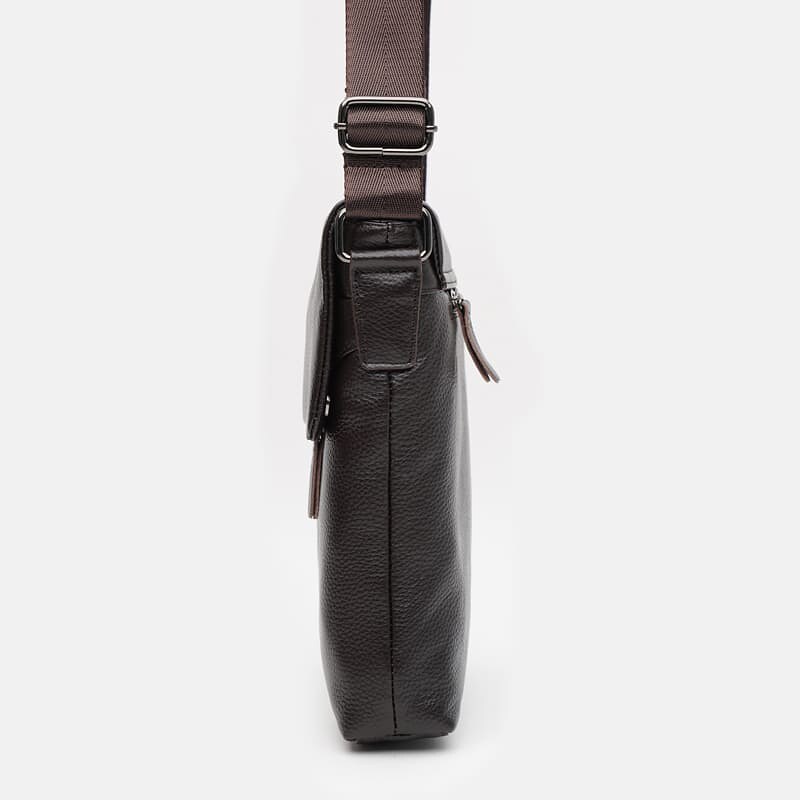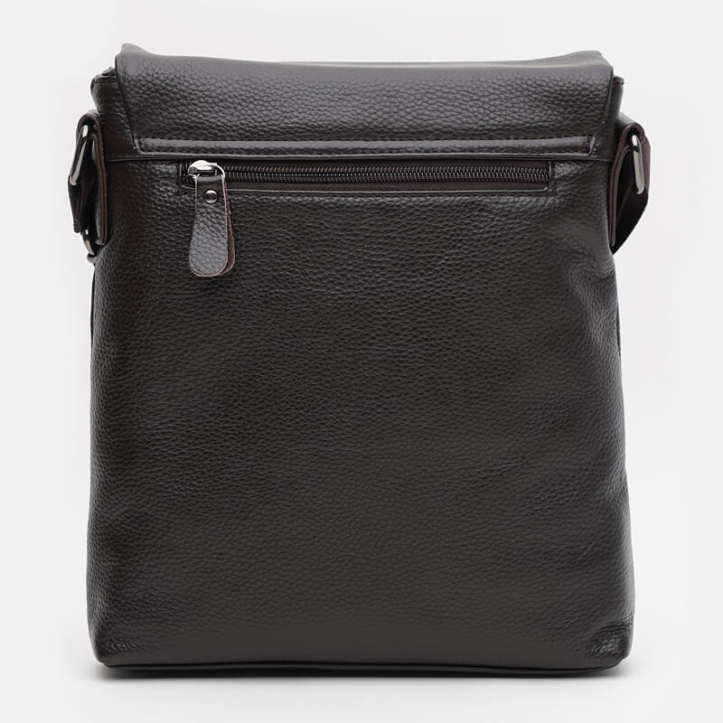 Сумка выполнена из натуральной кожи. Закрывается клапаном на кнопки. Внутри 1 отделение на молнии. Внутри 3 кармана для телефона и других разных вещей. Снаружи 2 кармана на молнии. Подкладка-текстиль. Цвет фурнитуры-серебро. Плечевой ремень регулируется по длине.