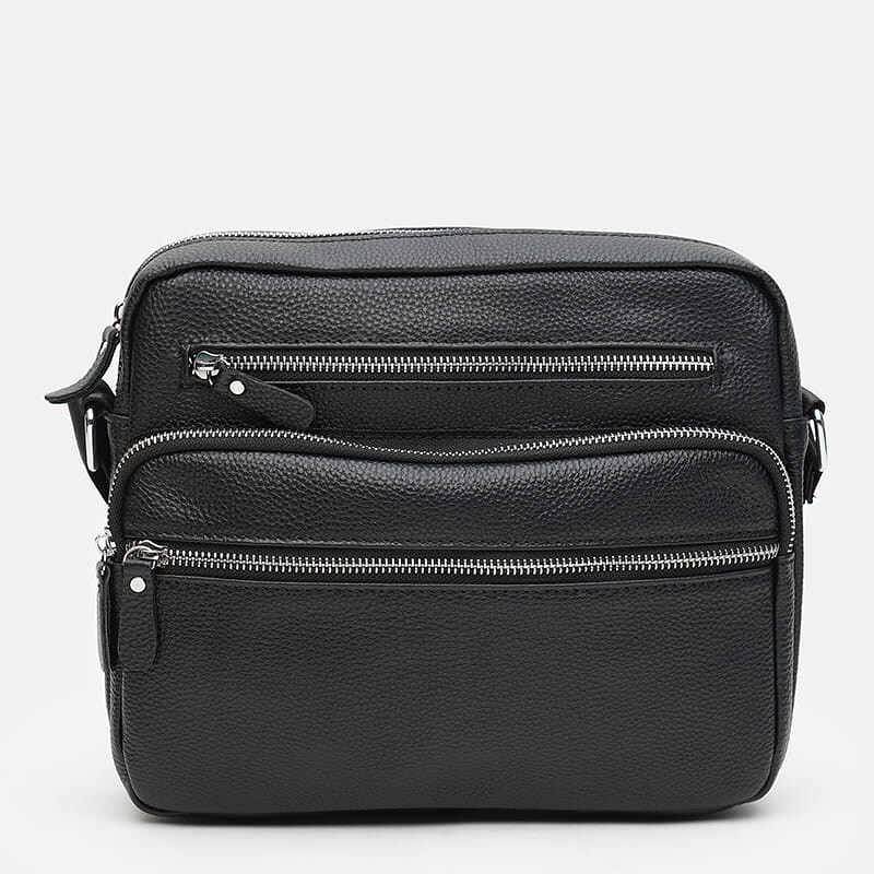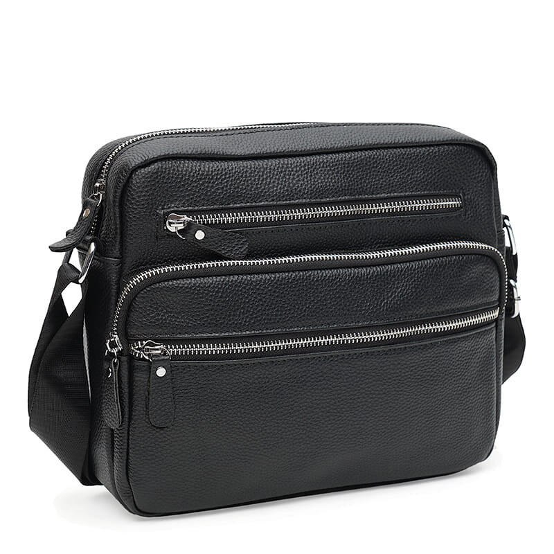 Сумка среднего размера вместительная и компактная. Выполнена из натуральной кожи. Имеет 1 основное отделение. Внутри сумки 3 кармана для телефона и мелочей. Снаружи имеется 4 кармана на молнии. Подкладка текстиль. Цвет фурнитуры серебро. С лицевой стороны фурнитура металл. Несъемный плечевой ремень регулируется по длине.