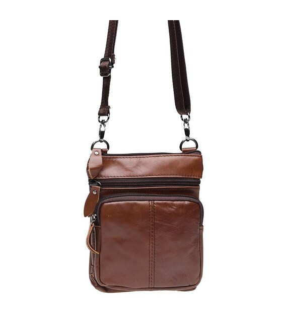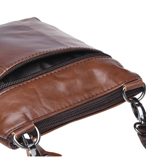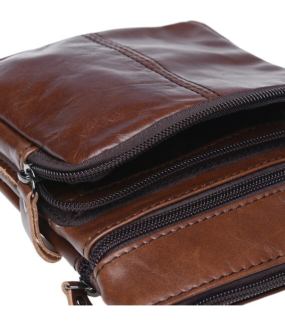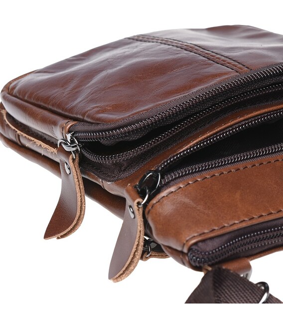 Данная модель кожаной сумки закрывается на молнию. Имеет 1 основное отделение и 3 кармана внутри. Снаружи-3 кармана на молнии. Подкладка-текстиль. В комплекте-съемный плечевой ремень.