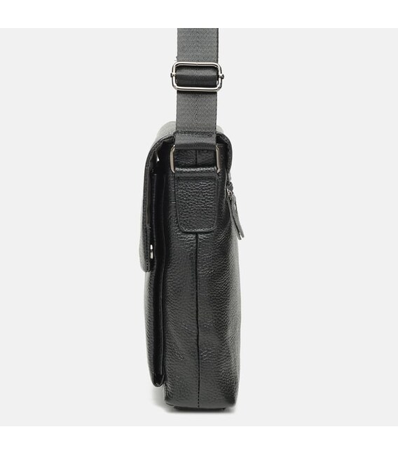 Мужская кожаная сумка закрывается на клапан. Имеет 1 основное отделение на молнии. Внутри 3 кармана для телефона и мелочей. С лицевой стороны-1 накладной карман на кнопках, с тыльной стороны-1 карман на молниии. Подкладка-текстиль. Цвет фурнитуры-серебро. Плечевой ремень регулируется по длине.