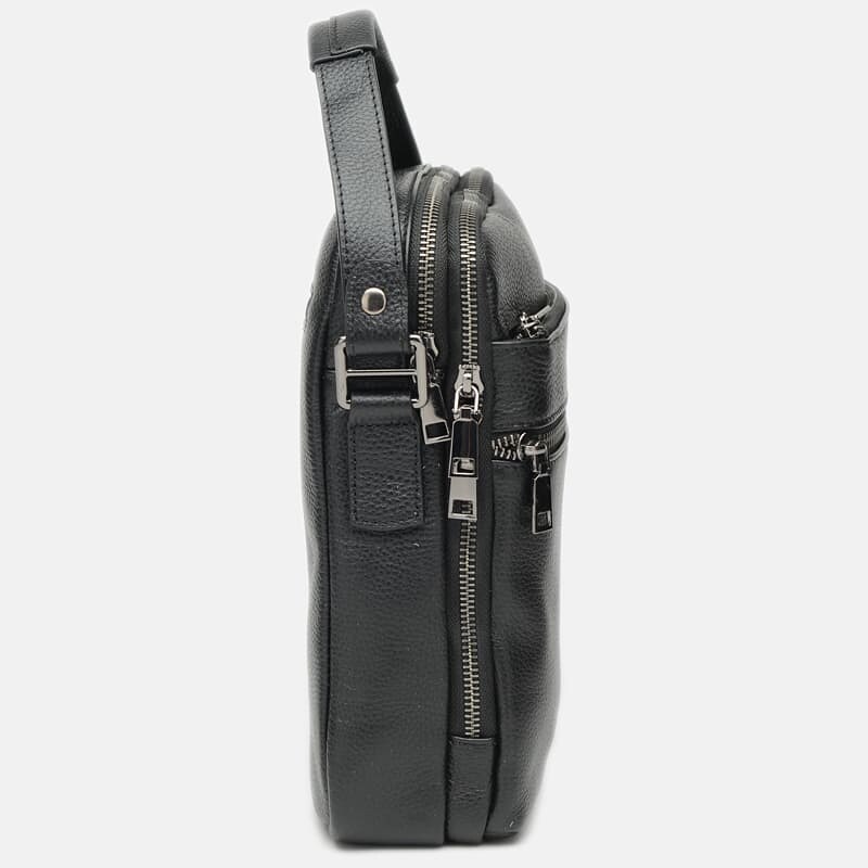 Мужская кожаная барсетка- нужный и практичный аксессуар для современного мужчины. Эта сумка стильно выглядит, качественно сделана и гармонично смотрится с любой одеждой, а благодаря своей функциональности является незаменимым аксессуаром. Сумка имеет 2 отдления на молниях. Внутри 4 кармана для телефона и других нужных вещей. Снаружи сумки 3 кармана на молнии. Подкладка - текстиль. Цвет фурнитуры - серебро. Имеет текстильный регулируемый ремень и съемную ручку на кнопках.