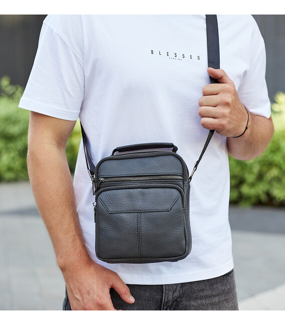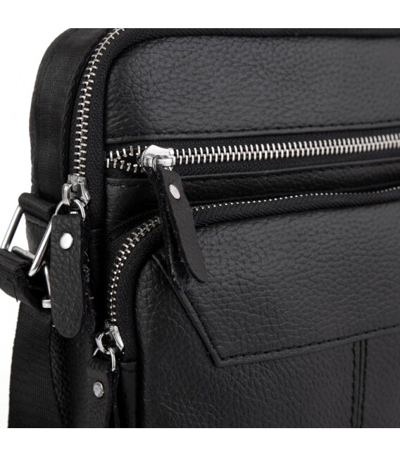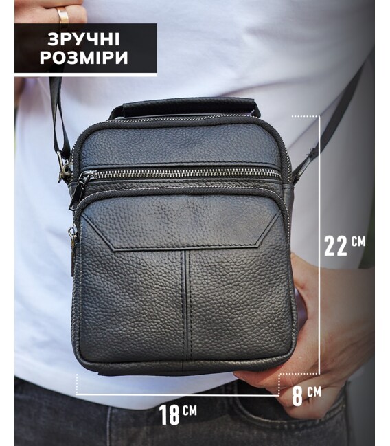Описание Мужская черная сумка-барсетка 18x22x8, мессендежр из натуральной кожи Tiding Bag M2237A черный
