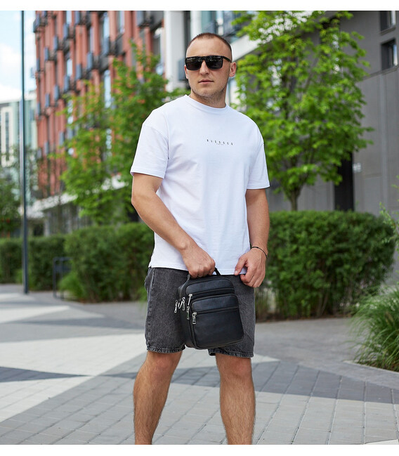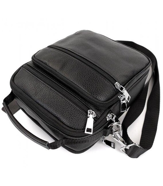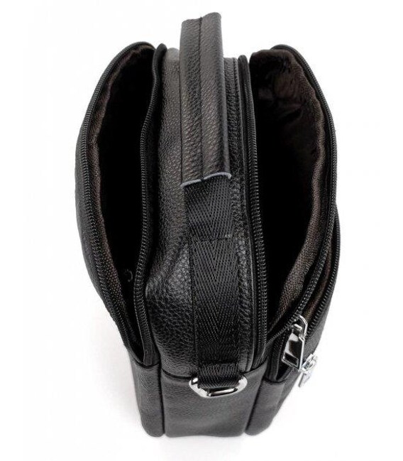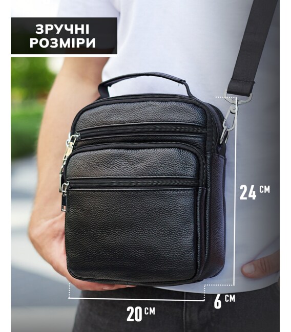 Описание Мужская сумка-барсетка кожаная 22х24х8 / мессенджер на одно плечо для города и путешествий, черный