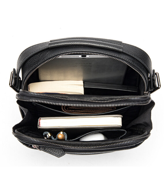 Описание Кожаная мужская сумка планшет через плечо 23х26х8, наплечная барсетка Tiding Bag MN-284334 черная