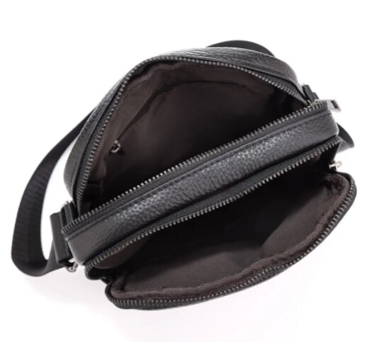 Сумка мужская через плечо кожаная черная Tiding Bag IT-73302