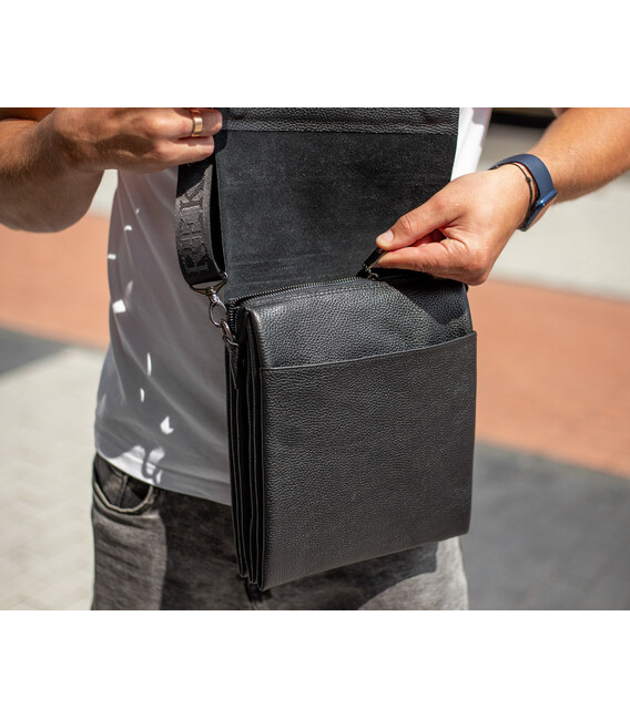 Описание Мужская кожаная месенджер 23х26х6, сумка планшет через плечо BEXHILL TD-18621 черный