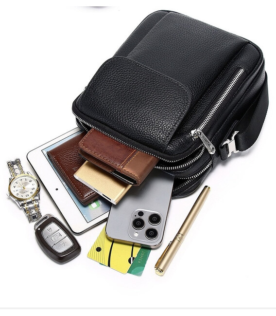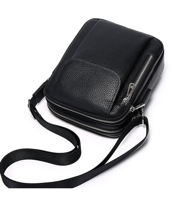 Лаконичная мужская сумка на плечо выполнена из высококачественной натуральной кожи, мягкой на ощупь. Изделие имеет два равномерных основных отделения, внутри которых находятся боковой карман на молнии, а также карман открытого типа. Кроме основных отделений, сумка имеет снаружи также три дополнительных отделения-карманы (с лицевой и тыльной части). Каждое отделение застегивается при помощи качественной фурнитуры. Внутри сумка отделана плотной подкладкой. Ремешок сумки плотный, регулируемый, съёмный, а короткая ручка удобная в руке.