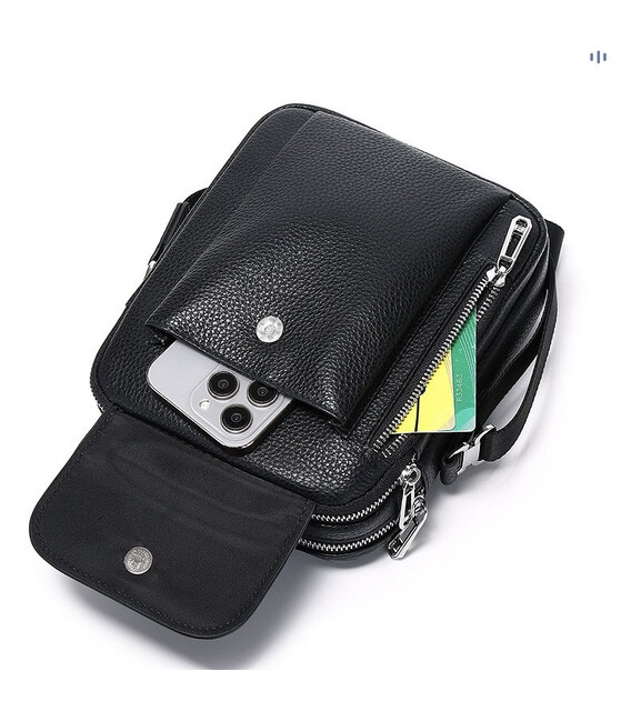 Мужская кожаная сумка-барсетка через плечо черная Bexhill BX-09164
