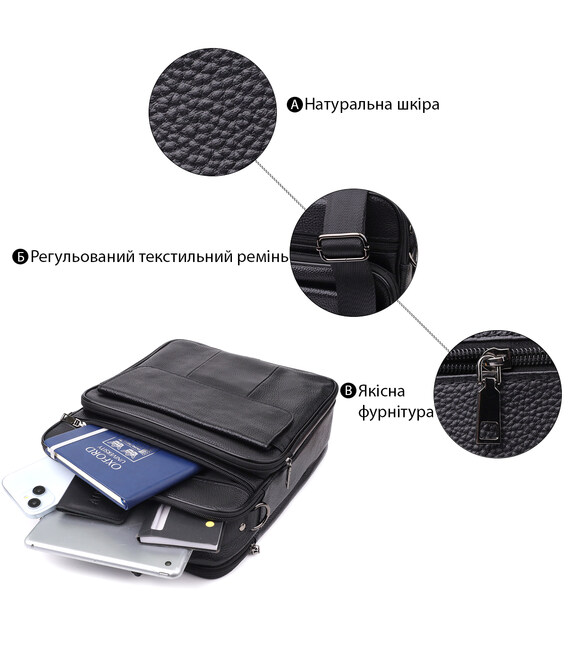 Эта кожаная сумка — отличный выбор для тех, кто ищет сочетание практичности, качества и элегантности в одном аксессуаре.