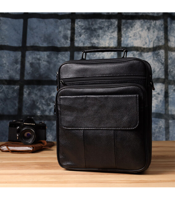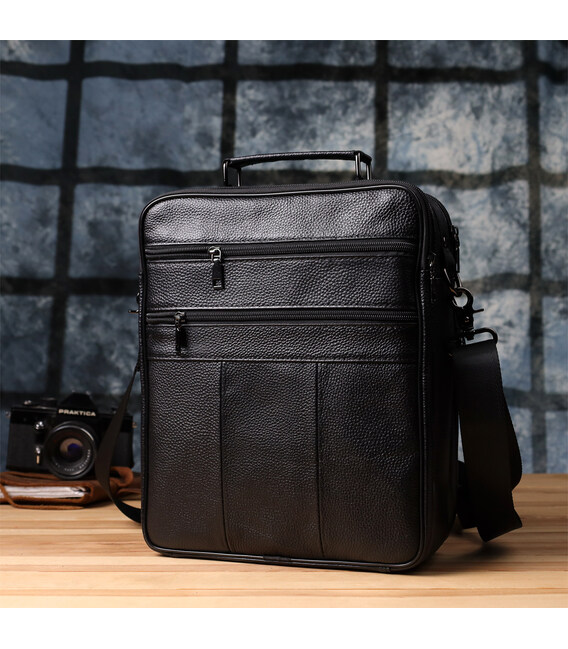 Описание Вместительная мужская сумка с ручкой для переноса в руке из натуральной кожи Vintage 23023 Черный