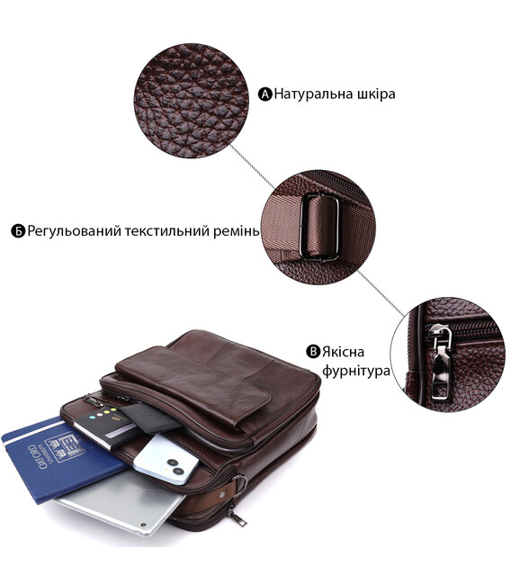 Эта кожаная сумка — отличный выбор для тех, кто ищет сочетание практичности, качества и элегантности в одном аксессуаре.
