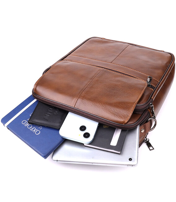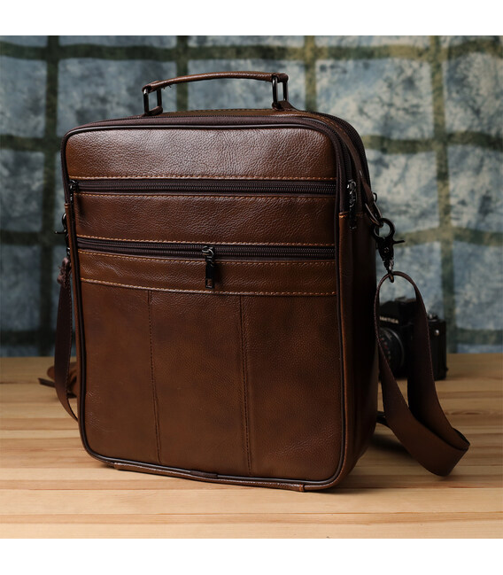 Сумка для мужчин с ручкой для переноса в руке из натуральной кожи Vintage 23028 Коричневый