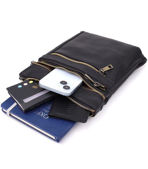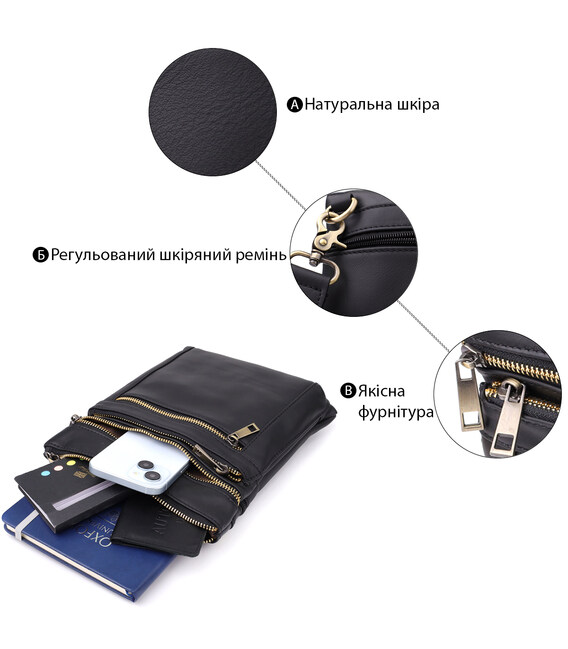 Мужская кожаная сумка в черном цвете выполнена из гладкой натуральной кожи с благородным матовым блеском. Этот лаконичный и функциональный аксессуар сочетает в себе сдержанный стиль и продуманную эргономику, идеально подходя для повседневного использования в городском ритме.
