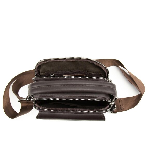 Мужская кожаная сумка Tavinchi TV-SM8-009C изготовлена из натуральной кожи имеющую гладкую поверхность.Особенности: размеры сумки составляют 16 х 21 х 6 см.Мессенджер имеет два отделения, которые закрываются на молнию. Внутри главного отделения имеется один маленький карман закрывающийся на молнию.С лицевой стороны расположен горизонтальный карман закрывающийся на клапан с магнитами. С задней стороны горизонтальный карман на молнии. Мессенджер отлично держит форму.Текстильный плечевой ремень съемный, регулируется по длине. Дополнительно аксессуар оснащен кожаной мягкой ручкой для переноски.Подкладка: текстиль. Цвет: коричневий Цвет фурнитуры: серебро.Нашли эту модель дешевле? Свяжитесь с нами и мы предложим Вам самую низкую цену в Украине, так как являемся производителем данного товара.