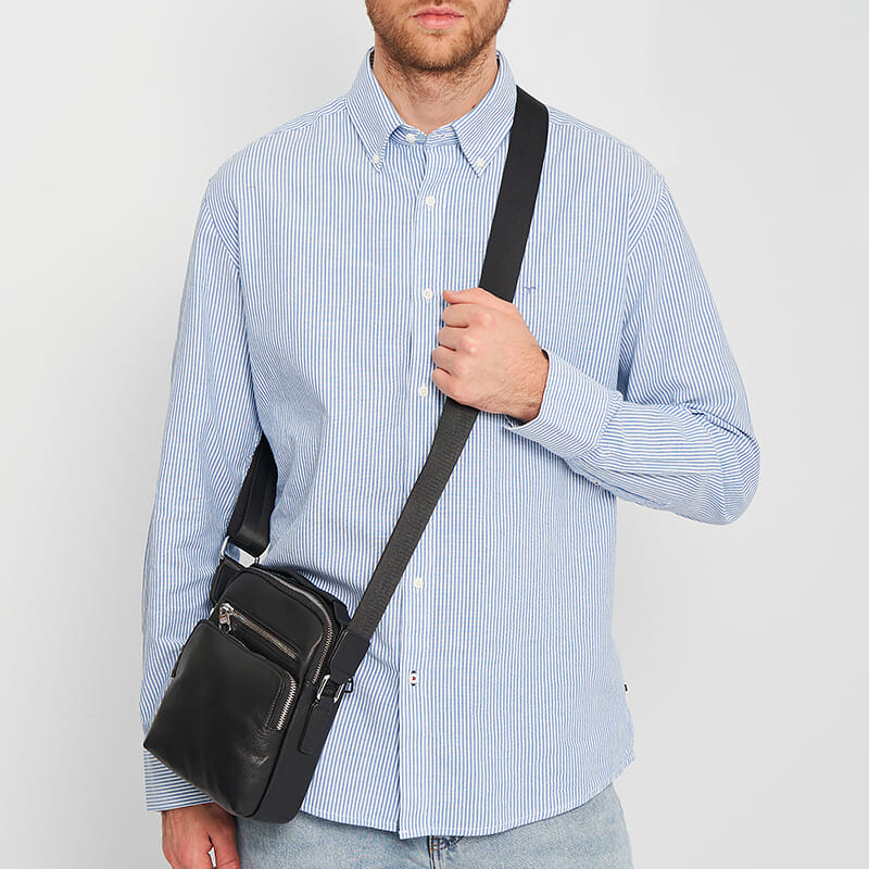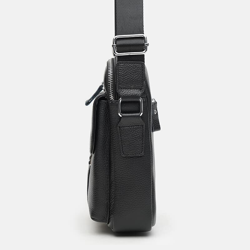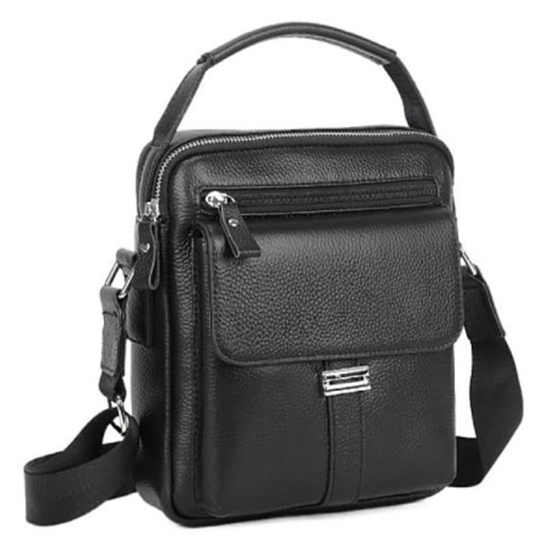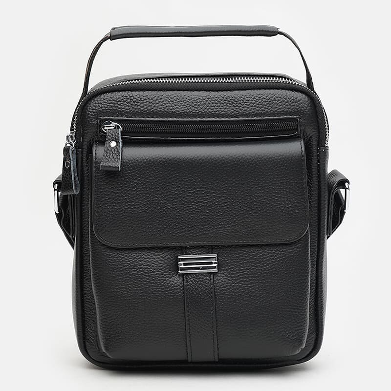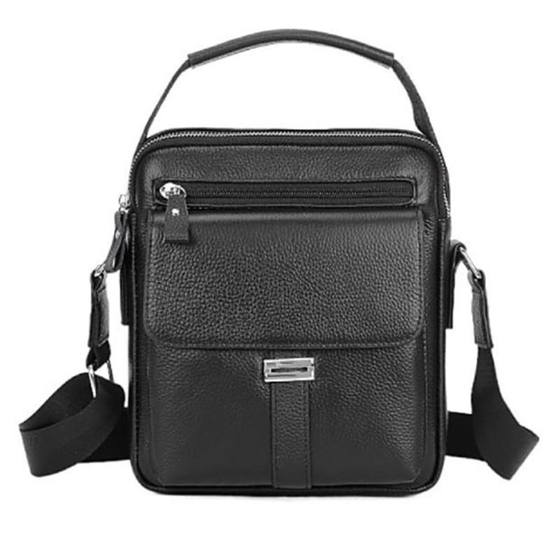 Мужская кожаная сумка выполнена из натуральной кожи. Имеет 1 отделение на молнии. Внутри 2 кармана для телефона и мелочей. С лицевой стороны 1накладной карман и 1карман на молнии, с тыльнойстороны- 1 горизонтальный карман на молнии. Подкладка-текстиль. Цвет фурнитуры-черный. Есть дополнительная ручка. Плечевой ремень регулируется по длине.