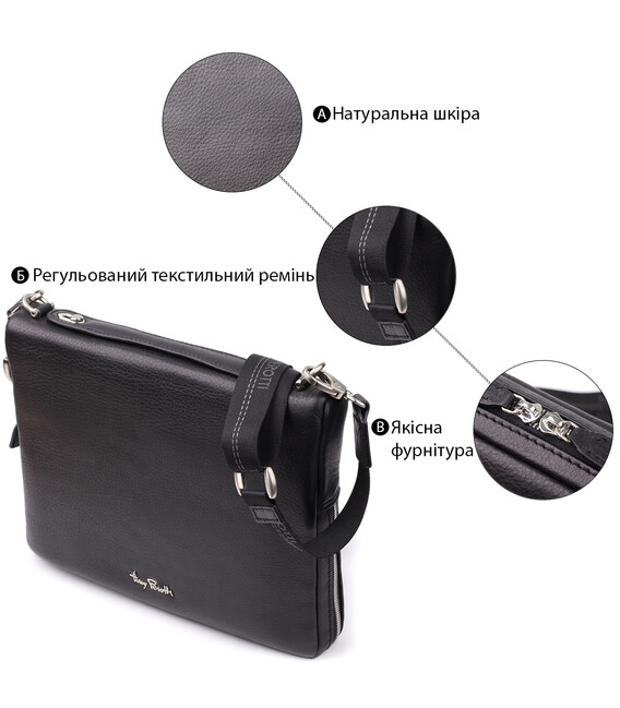 Описание Мужская сумка для планшета из мягкой натуральной кожи Tony Perotti 20846_1 (9594-28) nero Черный