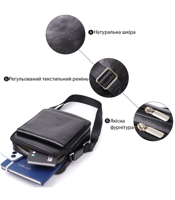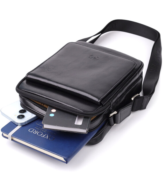 Отличная мужская сумка с карманами из гладкой натуральной кожи Tony Perotti 20857_1 (9148-17 nero) Черный
