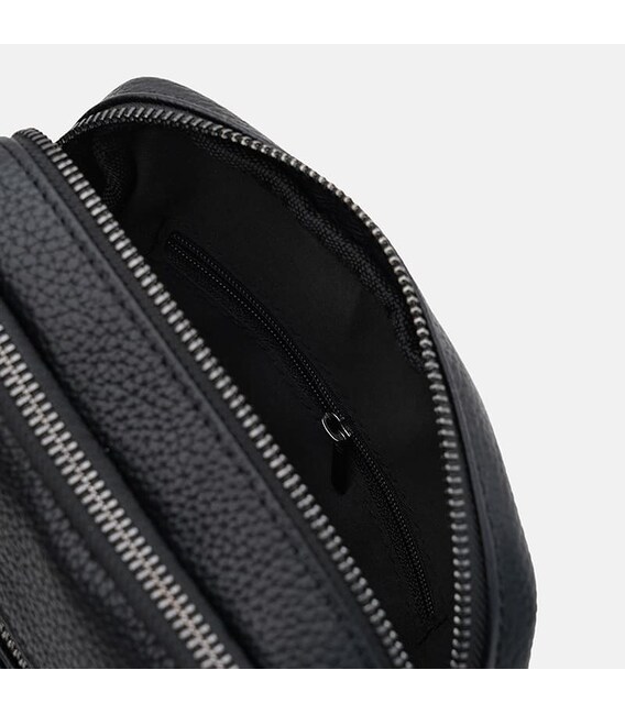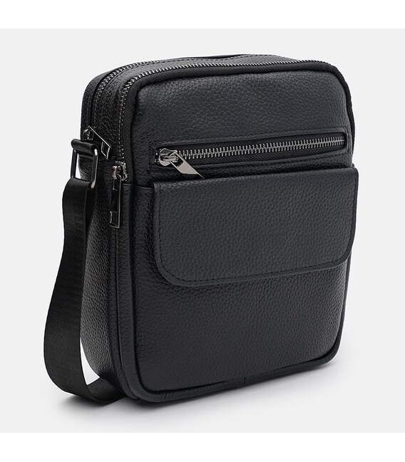 Мужская сумка выполнена из качественной натуральной кожи. Имеет 2 отделения, закрывается на молнию. С лицевой стороны-1 карман на клапане и 1 карман на молнии, с тыльной стороны- 1 карман на молнии. Внутри сумки - 1 карман на молнии. Подкладка текстиль, несъемный ремень из текстиля.