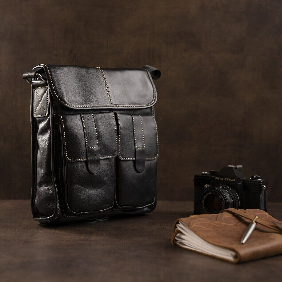 Вместительная сумка для настоящих мужчин в гладкой и блестящей коже черного цвета. Сумка обладает особым дизайном, который выделит вас из толпы и добавит больше строгости и солидности вашему стилю. Сумка дополнена качественной фурнитурой. Дизайн самой модели продуман до всех мелочей. Аксессуар упакован в тканевый чехол. Такая сумка станет самым прекрасным подарком для любого мужчины. Обратите внимание, что сумка выполнена в глянцевой блестящей гладкой коже.