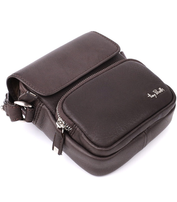 Коричневая кожаная сумка Tony Perotti — это сочетание функциональности, элегантного дизайна и премиального качества. Аксессуар выполнен из натуральной телячьей кожи, приятной на ощупь и устойчивой к износу. Продуманная внутренняя организация позволяет удобно разместить документы, телефон, карты, ручки и мелкие личные вещи. Классический дизайн, фирменный логотип и надёжная фурнитура делают сумку универсальным выбором для современного мужчины и отличной идеей для подарка.