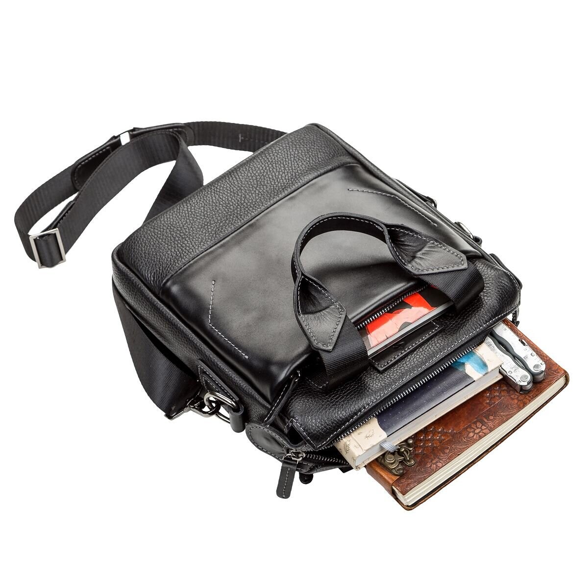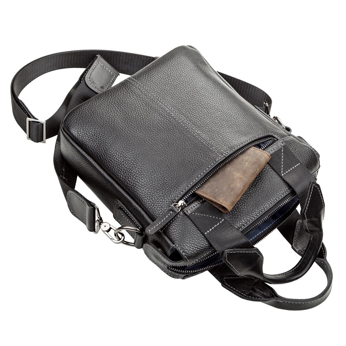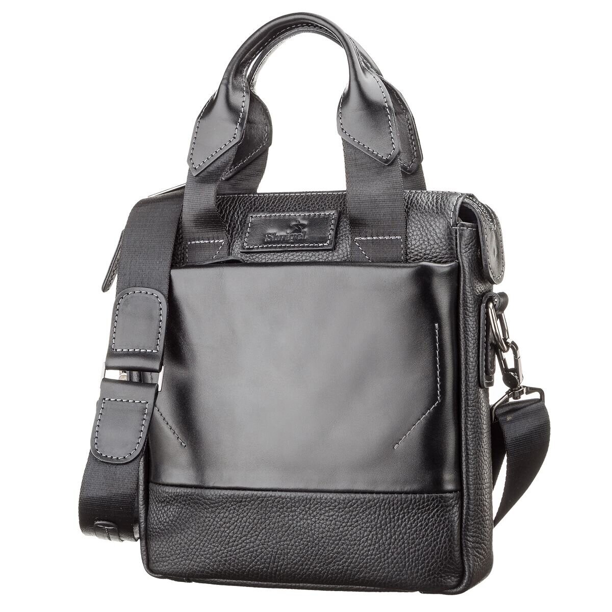 Стильная, современная мужская сумка с двумя ручками, вертикальная. Удобная и вместительная. Изделие выполнено из натуральной зернистой кожи с элементами гладкой кожи.