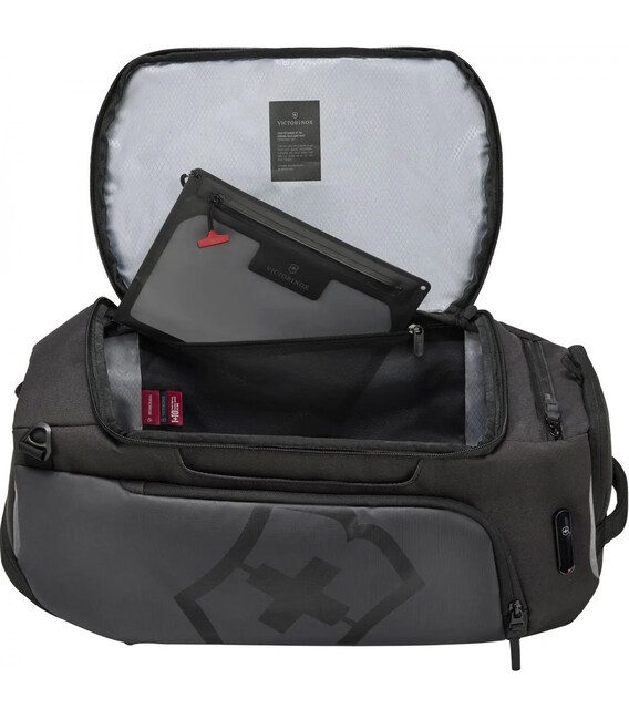 Victorinox Travel TOURING 2.0 Travel 2in1 Duffel (цвет - черный) – дорожная сумка 2 в 1 на 38 л, которая трансформируется в рюкзак. Швейцарский туристический вариант сумки-рюкзака устанавливает новый стандарт универсальности дизайна, в котором продумано все до мелочей: от вместительного основного отделения до водонепроницаемого чехла для документов и автономного отделения для обуви. Инновационно разработанный, чтобы изменить форму спортивной сумки на рюкзак за несколько простых шагов. Премиальная коллекция Touring 2.0 умело сочетает высококлассные материалы с максимально функциональной конструкцией.Информация о модели Touring 2.0 Travel 2in1 Duffel (612124)✔ Вместительный размер: 38 л / 57 х 32 х 28 см✔ Черный дизайн с большим логотипом компании Victorinox.✔ Выносливый водоотталкивающий полиэстер.✔ Фирменная подкладка, обработанная по технологии SILVADUR™ для предотвращения роста микроорганизмов.✔ Качественная фурнитура.✔ Две верхние ручки с коннектором + боковая ручка для переноски в руках.✔ Съемный наплечный ремень регулируемой длины.✔ Плечевые ремни для использования в формате рюкзака (регулируются, складываются в специальный карман).✔ Стильная фишка в виде накладки швейцарского складного ножа с пинцетом.✔ Бренд: Victorinox Travel (Швейцария).✔ Большой срок гарантии: 1+10 лет.• 1 большое отделение с внутренним карманом на молнии.• отдельный водонепроницаемый чехол для документов.• нижнее отделение для обуви.• боковой небольшой карман на молнии с двумя карманами.• передний карман на молнии.