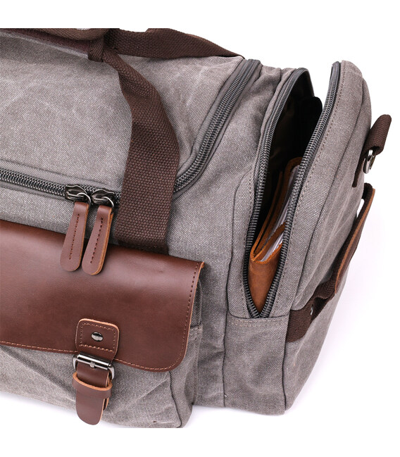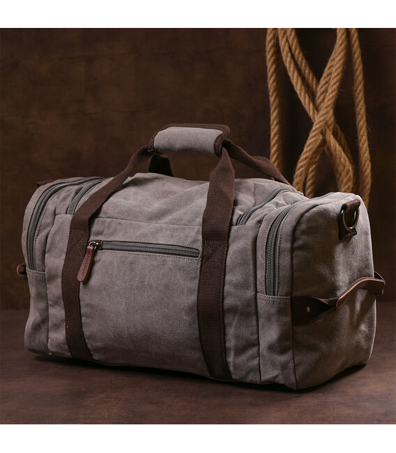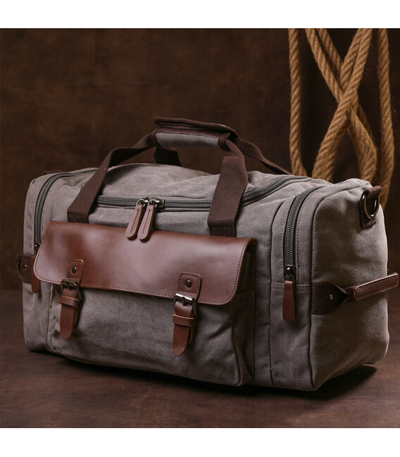 Описание Текстильная дорожная сумка для поездок спорта и путешествий Vintage 20191 Серая