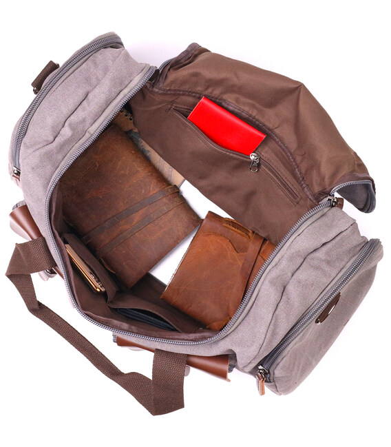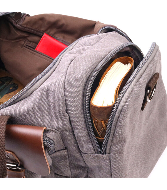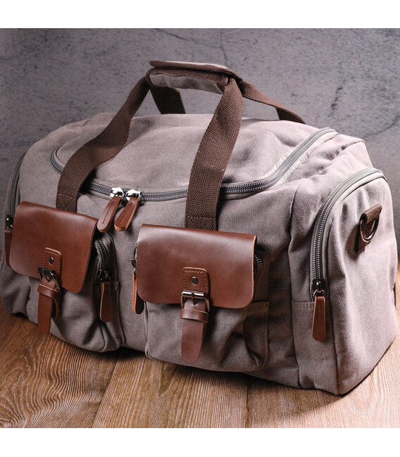 Описание Вместительная дорожная сумка из качественного текстиля 21238 Vintage Серая