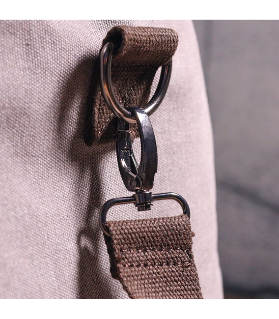 Большая сумка для путешествий из прочного текстиля в сером цвете. Сама по себе сумка, достаточно легкая, что является большим плюсом. Изделие имеет подкладку из ткани коричневого цвета и металлические ножки для защиты дна сумки. В комплекте съемный ремешок на плечо. С текстильной сумкой будет удобно отправиться в отпуск, командировку. Текстильная сумка отличное и бюджетное решение для вашего комфорта.