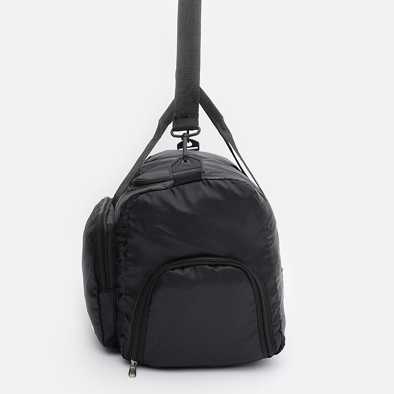 Спортивная сумка имеет 1 основное отделение на молнии, внутри 1 карман на молнии. С лицевой стороны 2 кармана, с тыльной -1 карман и с боковой стороны 1 карман. Внутри сумки также имеется большое отделение под обувь на молнии. Подкладка текстиль. Несъемная ручка: текстиль; несъемный ремень: текстиль.