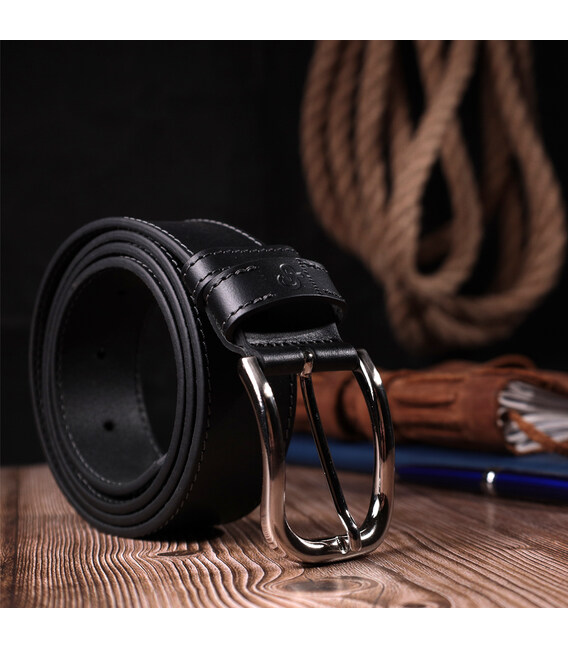 Описание Мужской ремень под джинсы с классической пряжкой из натуральной кожи GRANDE PELLE 20803 Черный
