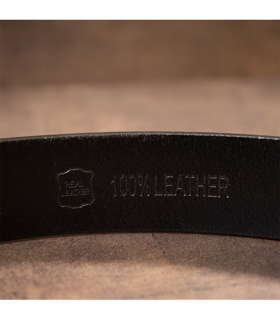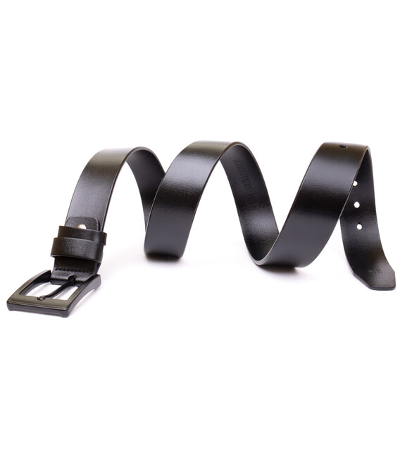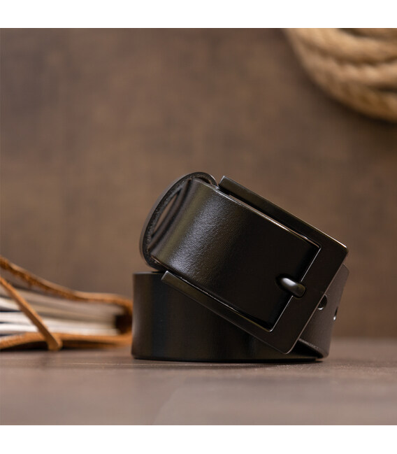 Кожаный ремень - must have для любого мужчины. Ремень выполнен из плотной натуральной кожи высокого качества. Дополнен ремень классической затемненной пряжкой. Классический черный цвет подойдет под любую обувь и аксессуары. Модель очень универсальная. Пряжка ремешка выполнена из крепкого металла. Дизайн ремня продуман с учетом всех модных тенденций и новинок этого сезона. Классический ремень в черном цвете всегда останется в тренде. Рекомендуем вам кожаный ремень как для себя, так и в качестве подарка близкому мужчине.