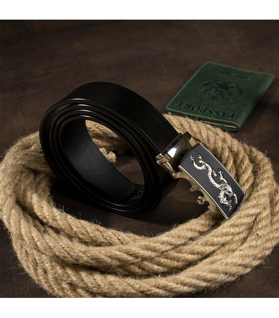 Ремень мужской серебристый дракон Vintage 20256 Черный