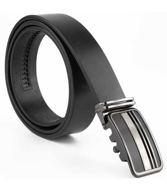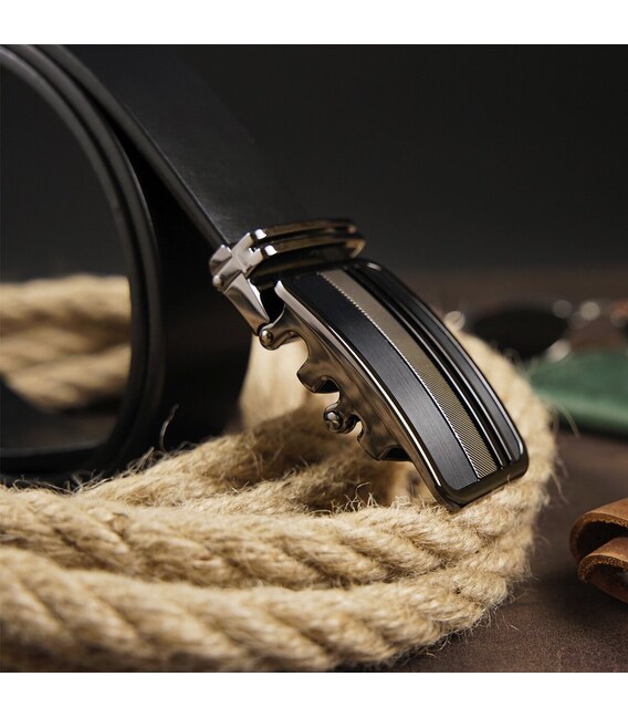 Ремень мужской с автоматической пряжкой полоски Vintage 20292 Черный