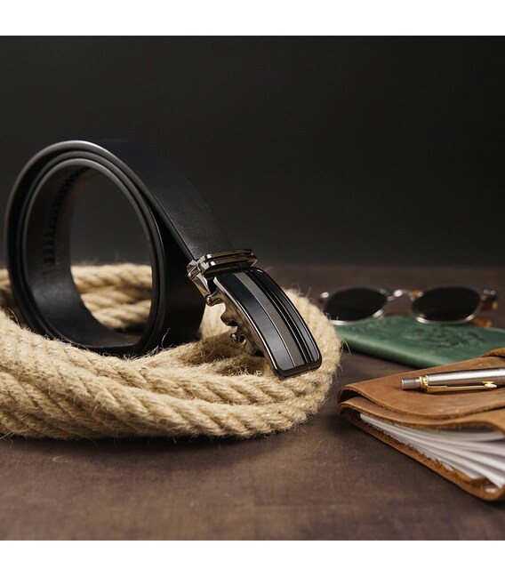 Описание Ремень мужской с автоматической пряжкой полоски Vintage 20292 Черный
