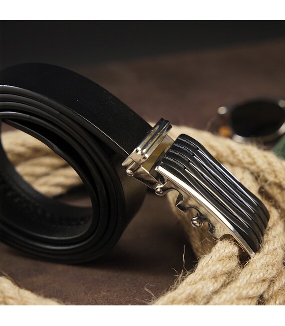 Описание Ремень мужской с автоматической пряжкой полоска Vintage 20301 Черный