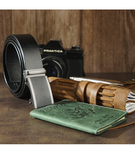 Описание Ремень мужской c затемненной пряжкой и черной вставкой Vintage 20284 Черный