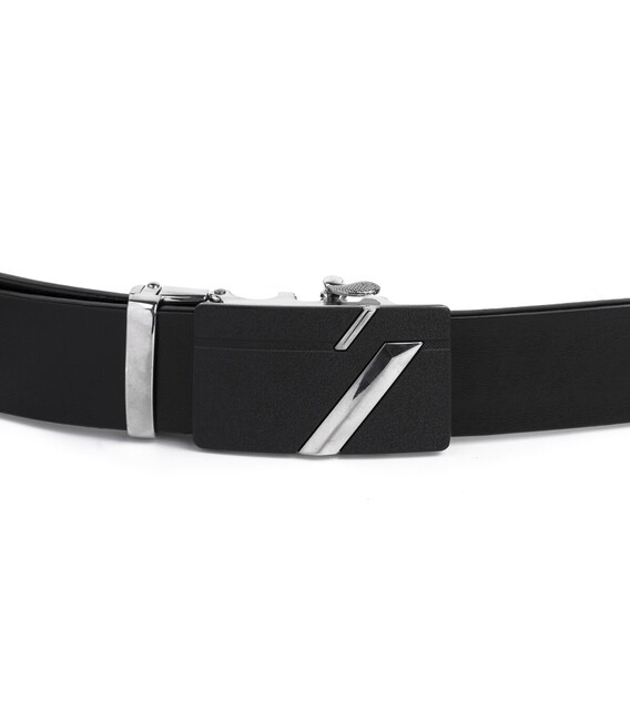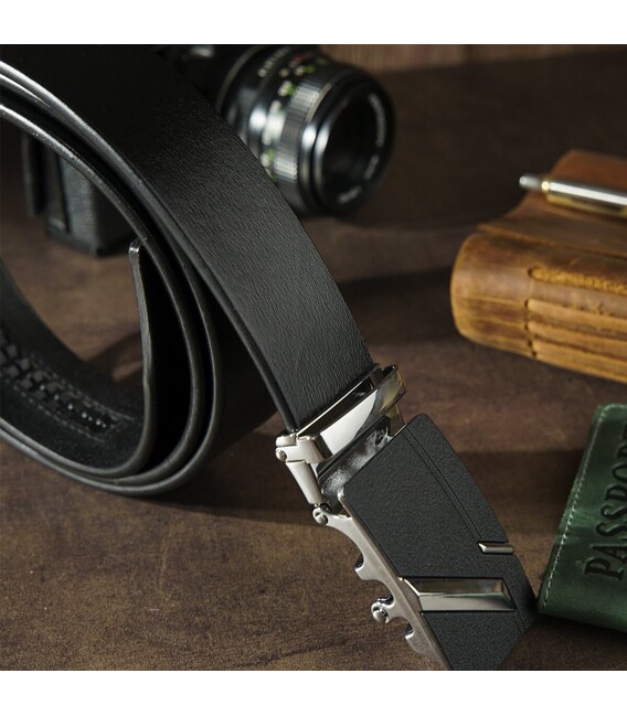 Кожаный ремень для настоящих мужчин с продуманным до мелочей дизайном. Ремень из плотной кожи. Дополнен аксессуар солидной пряжкой автомат из надежного металлического сплава черной матовой заливкой и серебристыми диагональными линиями. Ремень долго проносится и станет прекрасным завершением вашего образа.